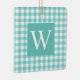 Aqua gingham check with initial.
