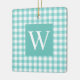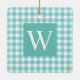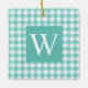 Aqua Gingham Check Initial Ceramic Ornament