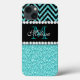 AQUA GLITTER BLACK CHEVRON MONOGRAM Case-Mate iPhone CASE