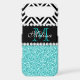 AQUA GLITTER BLACK CHEVRON MONOGRAMMED Case-Mate iPhone CASE