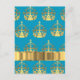 Aqua & gold crown pattern postcard