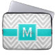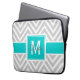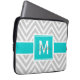AQUA, GRAY CHEVRON PATTERN PERSONALIZED LAPTOP SLEEVE