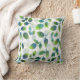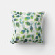 Pillow printed with abstract leaf pattern in aqua blue, green and white, from original watercolor painting.