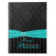 This personalised grey and black damask with stripes wedding planner notebook has a turquoise blue PRINTED ribbon and a PRINTED diamond jewels buckle on it, and customisable text that you can change to suit your needs.Email niteowlstudio@gmail.com if you need assistance.