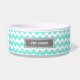 Aqua Grey Chevron Custom Name Dog Bowl