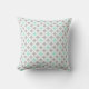 Chic and modern decorative throw pillow in fashionable light sky blue, grey and white diamonds and circles geometric pattern.