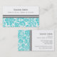 Mummy calling cards in classic and chic floral damask pattern in modern white, dark charcoal grey, and bright turquoise sky blue. Customisable with your contact details, stylish and contemporary, the perfect way to set up play dates or keep contact with playgroup moms. Contact us for a custom colour.