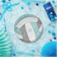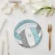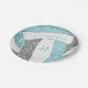 These custom volleyball birthday party paper plates feature a stylised volleyball graphic with aqua, grey and white panels, upon which you can customise your text - the aqua and grey panels of the volleyball are blended with a pretty floral kaleidoscopic pattern for a textured appearance that is artsy and girly - by katz_d_zynes