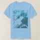 Featured is a diagonally slanted, geometric, abstract design, composed of shapes and lines with a faded, patterned effect in aqua blue, and light grey-green, influenced by the Mid-Century Modern style. Pictured here on a light blue t-shirt, with other colours and styles available. There is also somewhat of a painterly watercolor effect to the design in combination with the T-shirt colour. The design projects a sleek artistic quality for a versatile and classy ddition to your casual and everyday wear (whether at home, socialising with friends, playing sports, or running about town). The shirt design as "wearable art" also expresses a sense of your individualised style, contributing to a feeling of being "together" and creative in your personal wardrobe choices.