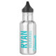 Fun bright blue steam locomotive train drinks bottle perfect for a young train enthusiast, model train builder or trainspotter. Customise with your son's full name and first name on train. Currently reads "Ryan Richards". Illustrated and designed exclusively by Sarah Trett.