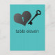 Thank your wedding guests with the elegance of this whimsical Heart Lock and Key Table Number Postcard in turquoise. This unique table postcard features a metal look heart-shaped lock with a matching key on a digital art rendered wood panel background. This lovely design would be the perfect choice for a sophisticated wedding. Easy to customise, simply add the table number in the text field provided. Click on the "Customise It" button to find additional personalisation options.