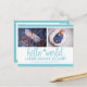 Aqua Hello World Photo Birth Stat Announcement Postcard
