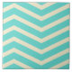 A colourful, contemporary pattern featuring a small chevron design of aqua and cream herringbone, zigzag stripes.