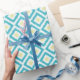 Aqua Lemon Diamonds Ikat Pattern Wrapping Paper