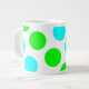 Aqua Lime and White Polka Dots Large Coffee Mug
