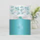 This Aqua-marine and Silver monogrammed wedding invitation has a silver PRINTED ribbon and PRINTED aqua-marine gemstone and diamond jewel. ALSO, if you re-size the invitation, or if you change fonts, or the size of the font, some of the design and/or text may get cut-off. Everything will print as you see it on your monitor. I will not see your invitation, and Zazzle will NOT correct anything (typos, mis-alignment etc.). The text and paper is all customisable. If you need help with this invitation, please email me BEFORE you place your order. If you require any other matching items, please email your request to niteowlstudio@gmail.com.