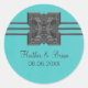 Regal and elegant Medallion Border Wedding Stickers featuring a digital art metallic medallion and a three stripe border on a turquoise background. These bold and stylish wedding stickers are perfect for an equally bold and stylish wedding and are great for favours or envelope seals. Easy to customise, simply add the details of your wedding in the text fields provided. Click on "Customise It" to find additional personalisation options such as changing fonts or text size.