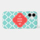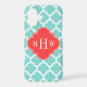 Turquoise Aqua and White Moroccan Quatrefoil Trellis Pattern #5, Coral Red Quatrefoil 3 Initial Monogram Label