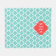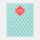 Turquoise / Aqua and White Moroccan Quatrefoil Trellis Pattern #5, Coral Red Quatrefoil 3 Initial Monogram Label