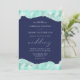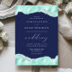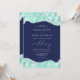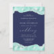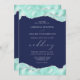 Aqua Navy Blue Silver Foil Glitter Wedding Invitation