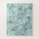 A soft dusty aqua base is layered with a myriad of graphic elements in charcoal grey, creating depth and visual interest.