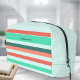 In refreshing aqua and orange, this trendy bag makes a stylish and summery accessory. With a cool striped design, the bag is useful for your travel essentials, and can be personalised with your name as an individual finishing touch.