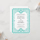 This beautiful papel picado inspired wedding invitation design features an ornate frame in lively aqua colour, a classic white background, and modern typography. This elegant yet modern design is a fabulous choice for a Latinx wedding or Mexico destination wedding. You can customise this design even further by adding a photo or additional text to the backer. See more from the collection above...