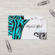 Promote your hip and cool party planner business with this aqua blue, black, and white modern and stylish rough textured zebra print, bold floral, and diamonds business card. This business card features a rough, textured zebra (animal) print background with a curved swatch adorned with gorgeous diamonds and bold, sassy floral swirls. This bold, modern, and stylish business card is also a great match for fashion designers, the music industry, singers, musicians, real estate agents, handbag designers, clothing stores, the entertainment industry, dancers, actresses, makeup artists, jewelery stores, jewelers, diamond sales, retail, cosmetologists, models, agencies, dance studios, party planners, event planners, and more. ©2011 Pam's Designs.