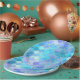 Aqua Pearlescent & Gold Mermaid Scale Pattern Paper Plate
