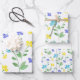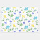 Aqua, Periwinkle, Yellow Watercolor Flower Pattern Wrapping Paper Sheet
