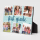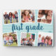 Create a special memory of your child's school year with this photo collage plaque featuring 6 photos. Personalize with their grade level and academic year in dark teal lettering on a light aqua tone on tone stripe background.