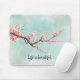 Aqua Pink Cherry Blossom Floral Mouse Pad