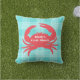Aqua Plaid and Coral Crab Outdoor Pillow