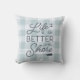 A perfect addition to your seaside abode, our plaid patterned throw pillow features a light aqua and white hand drawn buffalo check pattern with "life is better at the shore" overlaid in slate blue typography. Personalize the reverse side with your family name and year established.