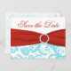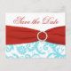 Aqua, Red, and White Damask Save the Date Postcard