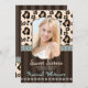 Add your photo to these sweet and fancy formal leopard print sweet sixteen invitations with a leopard spot background, subtle stripes and a printed rhinestone diamond and ribbon look design in light blue aqua, cream, brushed gold and bronze and dark brown hues. PLEASE, NOTE: no three dimensional embellishments have been added to this flat 16TH BIRTHDAY invite and card. Artwork © Chrissy H. Studios, LLC. All Rights Reserved.