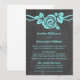 Sweet and pretty Rose Chalkboard Wedding Invitation in turquoise featuring a single lovely rose on a vine on a chalkboard look background. This elegant design is perfect for a spring or summer wedding. Easy to customise, simply add your wedding details in the text fields provided. Click "Customise It" to find more personalisation options.
