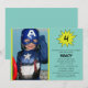 Aqua Save the Day Superhero Photo Birthday Party Invitation