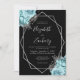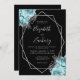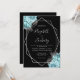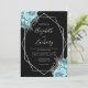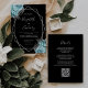 Aqua Silver Floral Black QR Code Wedding Invitation