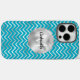 Aqua Silver Zigzag Stripes Monogram Case-Mate iPhone Case