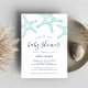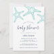 Our coastal chic baby shower invitations feature classic nautical styling with a clean, minimalist look and a lighthearted touch of marine life. Design features three vibrant turquoise starfish illustrations at the top, with your baby shower details beneath in a chic combo of navy blue serif and sans serif lettering. Perfect for nautical, summer, or beach theme baby showers.
