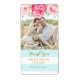 Wedding thank you custom photo template labels in light pastel turquoise teal sky blue and white stripes stripes pattern with vintage pink watercolor flowers and gold colour text. Perfect for wedding favours or wedding wine bottle labels.