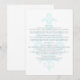 Simple with chic elegance describes this sophisticated Subtle Damask Wedding Information Card with a light turquoise damask flourish background. This modern info card is perfect for a traditional wedding and can be easily customised with your wedding details. For more customisation options, click on the Customise It button.