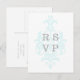 Aqua Subtle Damask Wedding RSVP Postcard