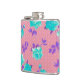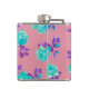 Aqua Teal and pink Floral Print Hip Flask