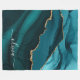 Aqua Teal Blue Agate Geode Gold Monogram Fleece Blanket