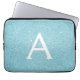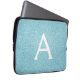 Aqua Teal Blue Glitter and Sparkle Monogram Laptop Sleeve