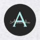 Black and Aqua Teal Blue Script Monogram Name Clothing Iron Label. This makes the perfect sweet 16 birthday, wedding, bridal shower, anniversary, baby shower or bachelorette party gift for someone that loves glam luxury and chic styles.