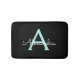 Black and Aqua Teal Blue Simple Script Monogram Name Bath Mats. This makes the perfect graduation, birthday, wedding, bridal shower, anniversary, baby shower or bachelorette party gift for someone that loves glam luxury and chic styles.