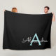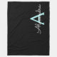 Black and Aqua Teal Blue Simple Script Monogram Name and Initial Fleece Blanket. This makes the perfect sweet 16 birthday, wedding, bridal shower, anniversary, baby shower or bachelorette party gift for someone that loves glam luxury and chic styles.